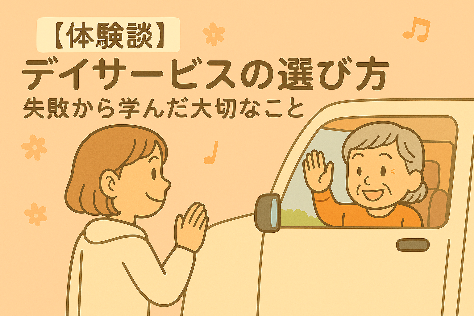 ヒント 【体験談】デイサービス選びで失敗した私が気づいた大切なこと デイサービス選びで失敗した私の体験談。母が拒否した理由と、再チャレンジで気づいた選び方のポイントを紹介します。 2025.09.18 ヒント