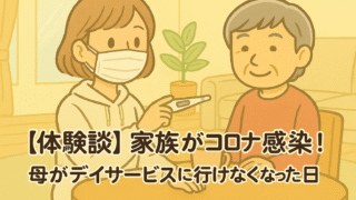 ヒント 【体験談】家族がコロナ感染!母がデイサービスに行けなくなった日々 息子がコロナ感染し、母のデイサービスが突然中止に。介護・看病・家事・仕事が重なった日々を振り返り、在宅介護中の工夫や感じたことをまとめました。 2025.10.15 ヒント