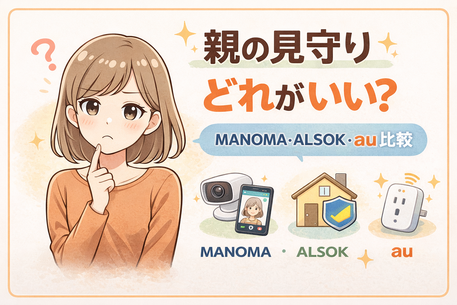 今回は、MANOMA・ALSOK・au見守りプラグの3つのサービスを比較しました。